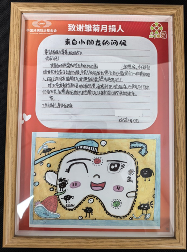 此次公益行动后,2026年2月,GC苏州收到了来自中国牙病防治基金会感谢信以及重庆市石柱县西沱镇小学生们亲手绘制的画作。稚嫩的文字与充满童趣的画面,既是孩子们最真挚的感谢,也是对企业公益行动的温暖回响。
